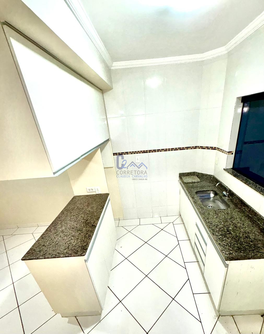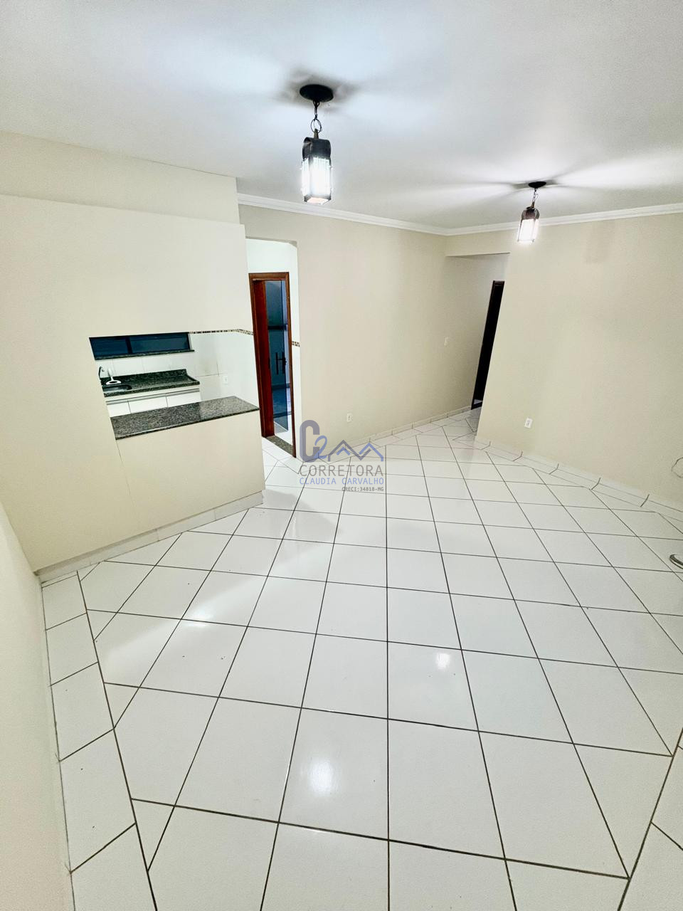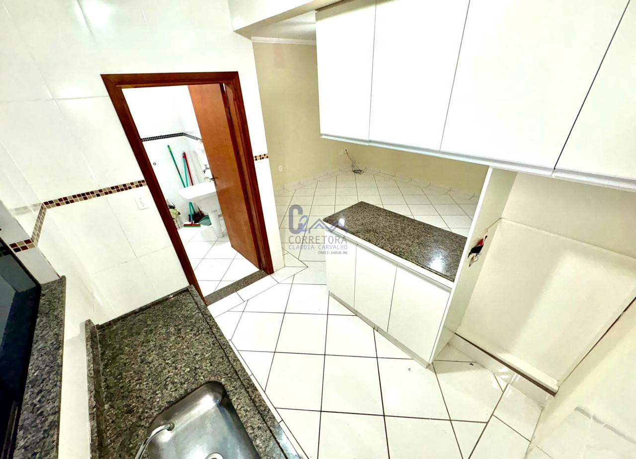 Apartamento amplo e luminoso, de 98m² com 3 quartos, sendo uma suíte, sala e cozinha americana com armários.