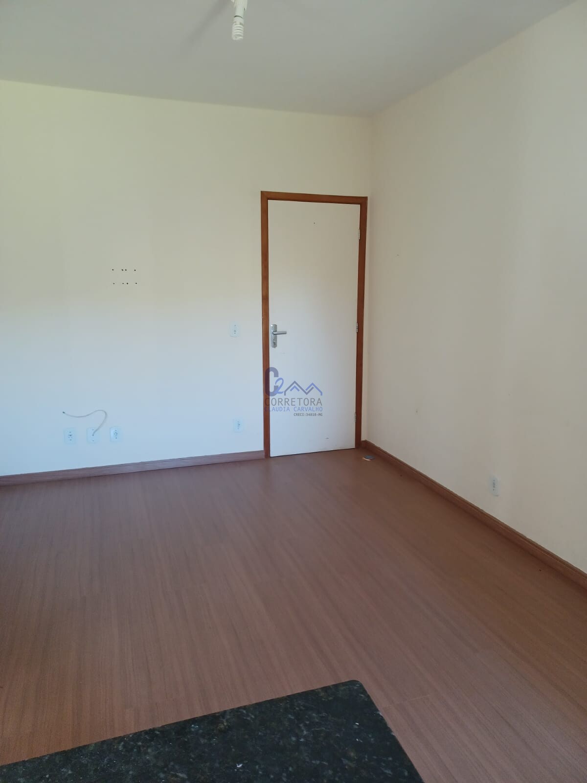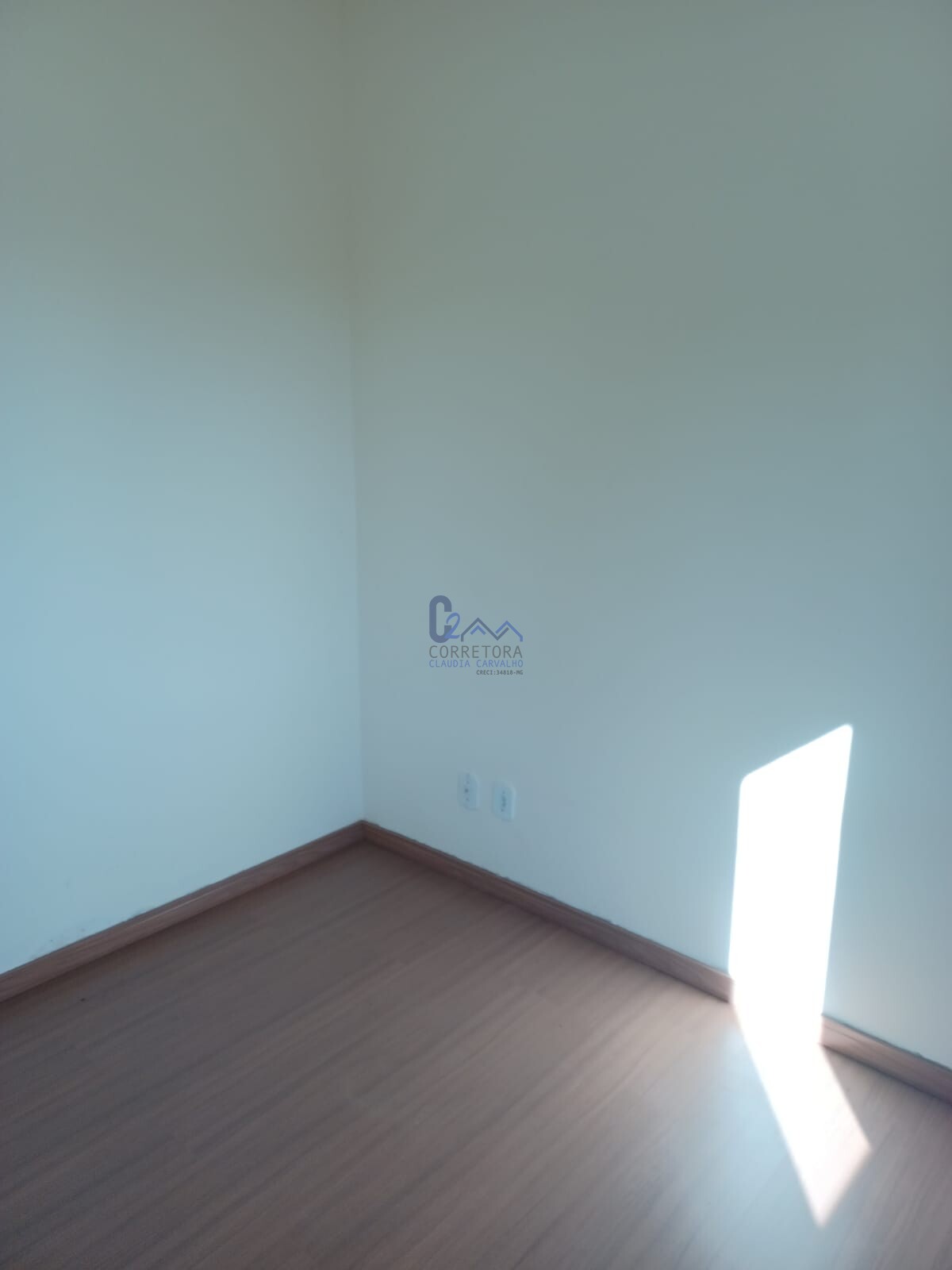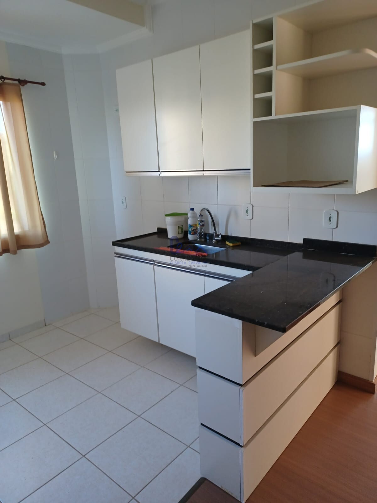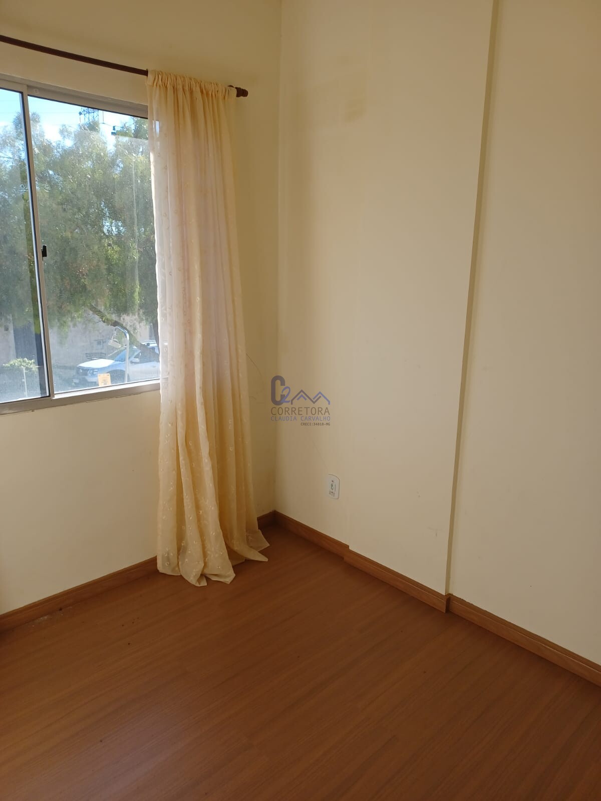 Dois quartos, banheiro social, sala ampla e cozinha com armários.