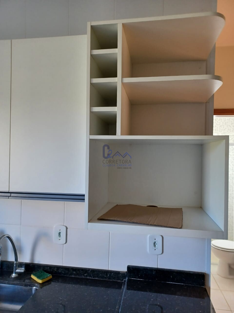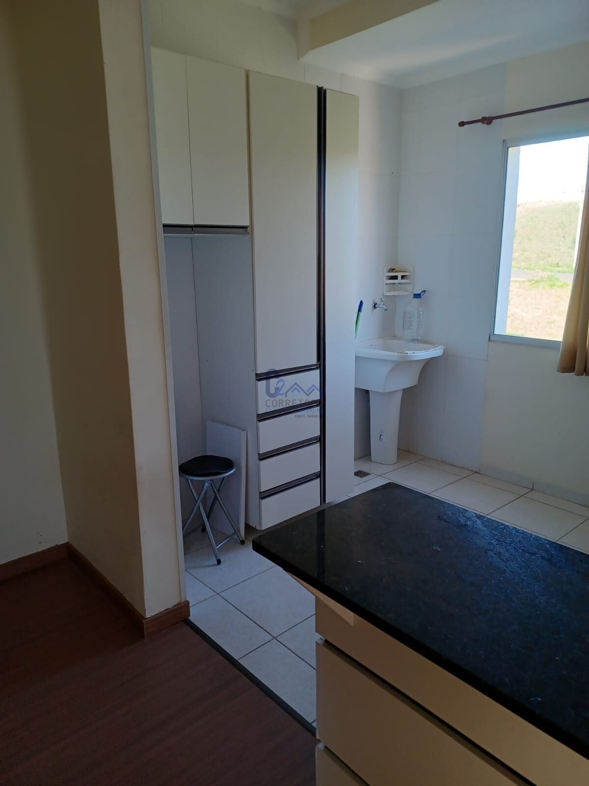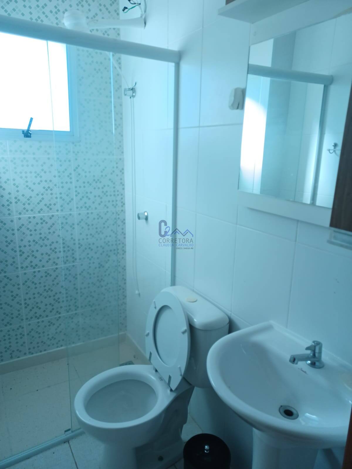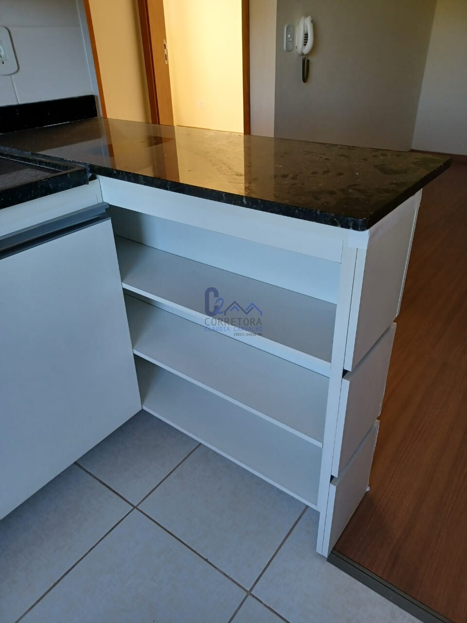 Dois quartos, banheiro social, sala ampla e cozinha com armários.