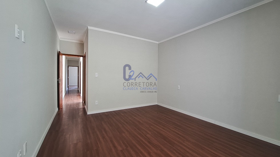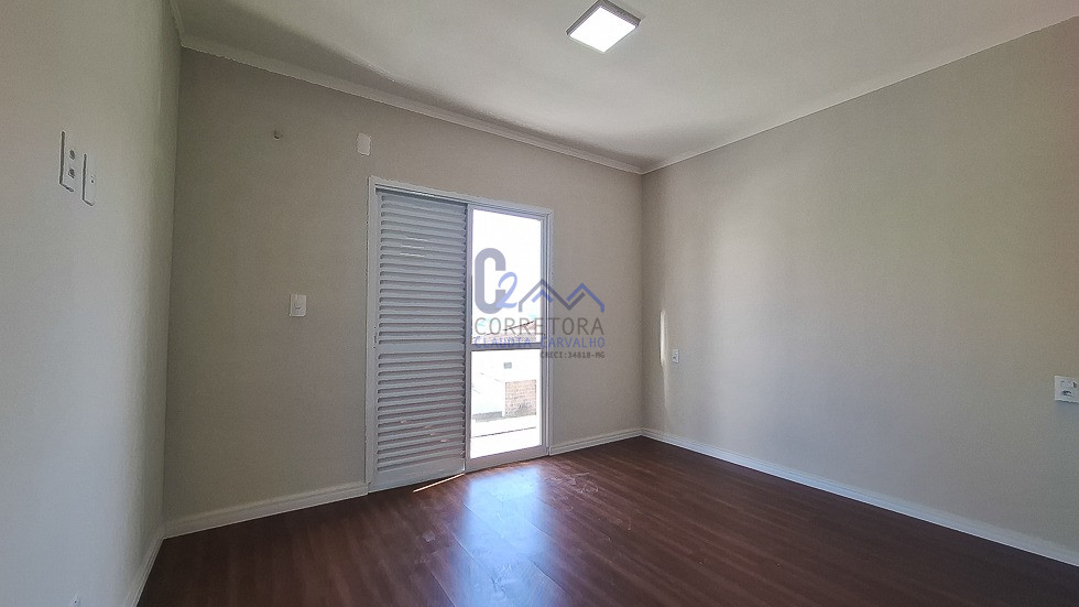 A casa tem 3 quartos amplos com 1 suíte com varanda.