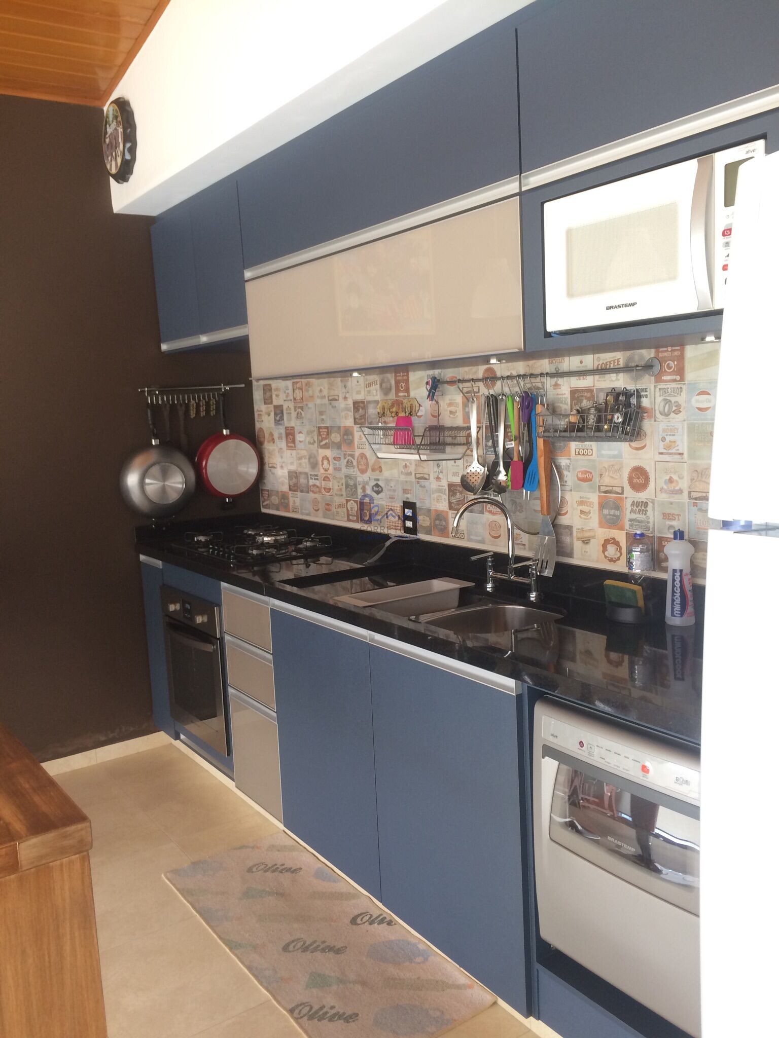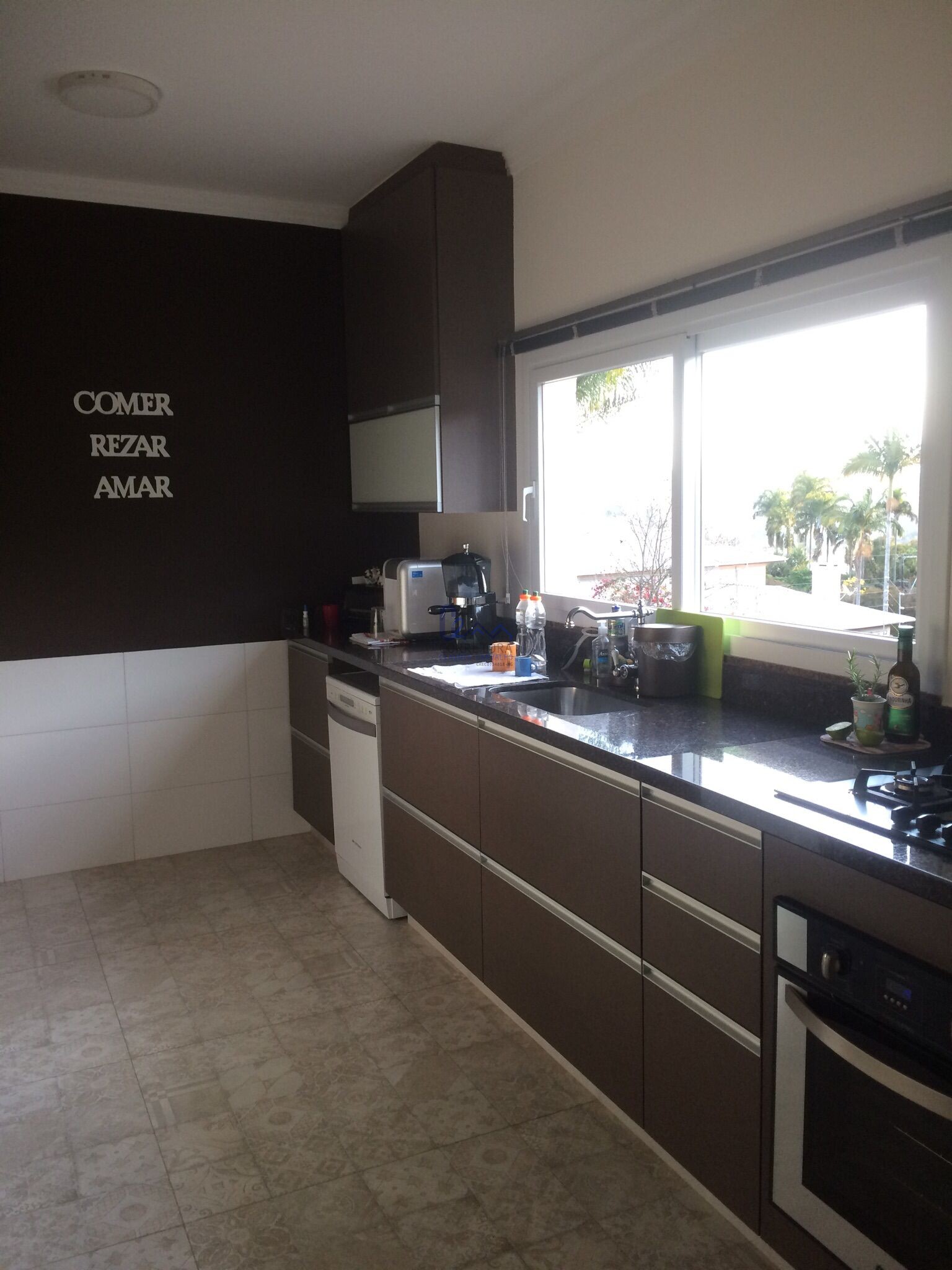 Cozinha Gourmet completa com armários, fogão e forno embutidos, bancada em granito.