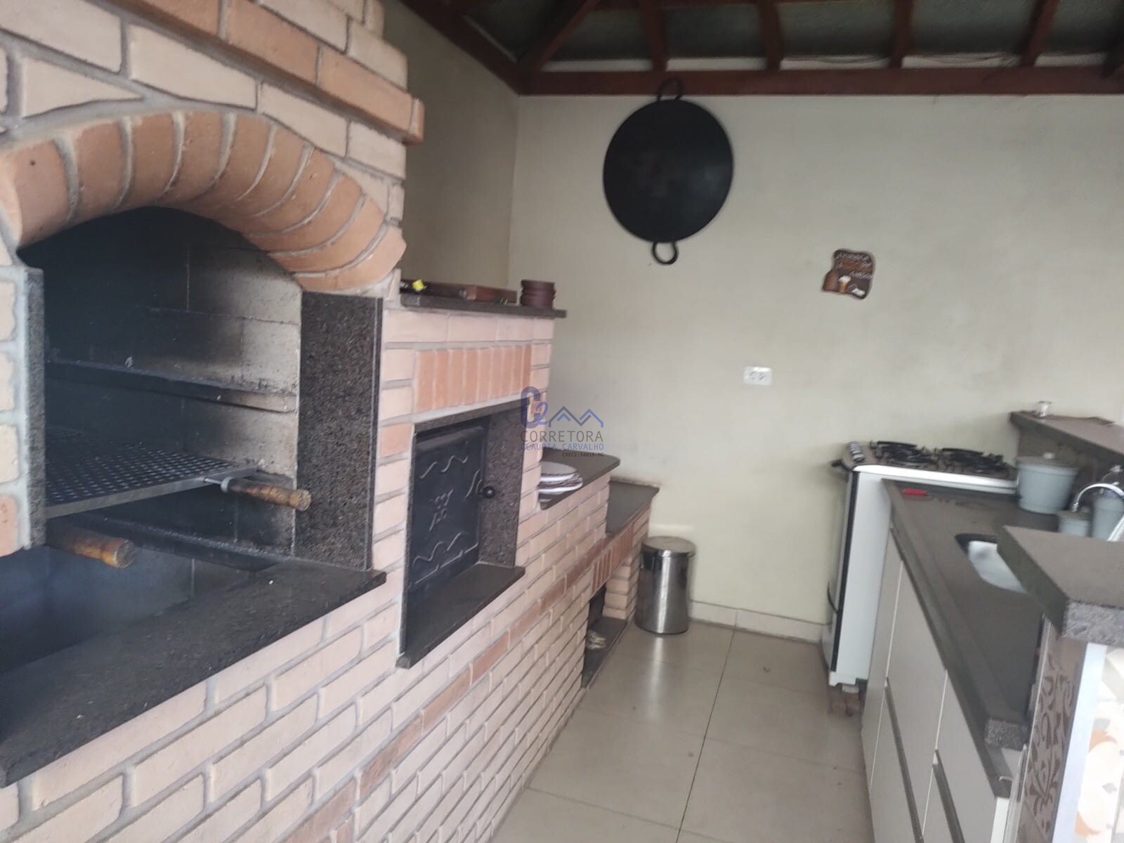 Área externa com fogão a lenha , churrasqueira, banheiro e um bom quintal.