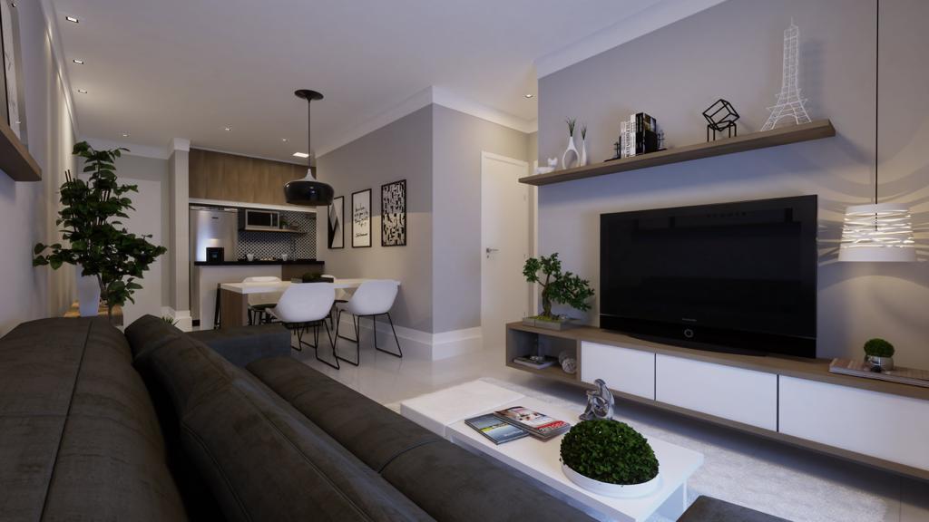 O apartamento tipo será composto de: 02 quartos, sendo 01 suíte, banheiro social, varanda gourmet, sala de jantar/estar, cozinha e área de serviço, com 01 vaga de garagem. Área privativa 65,20 m²;