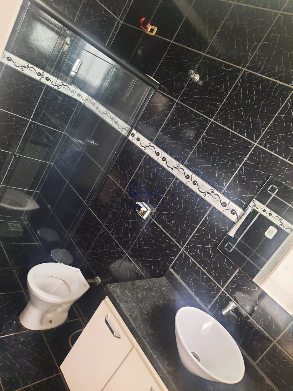 Um lavabo na área de lazer;